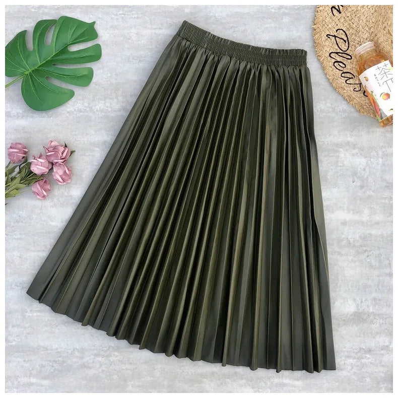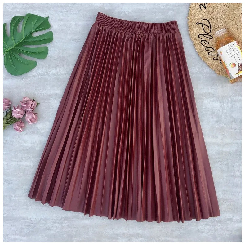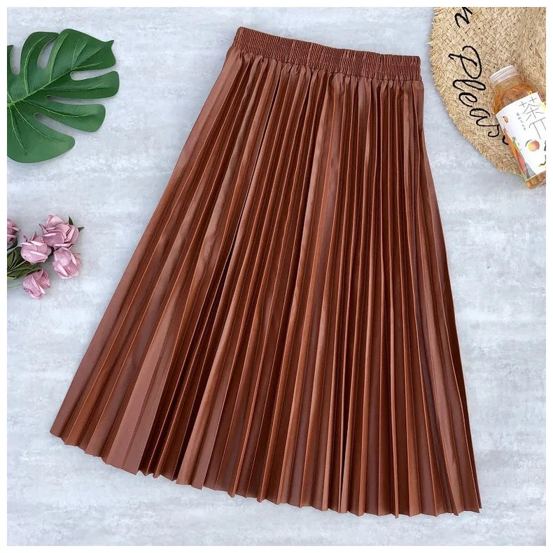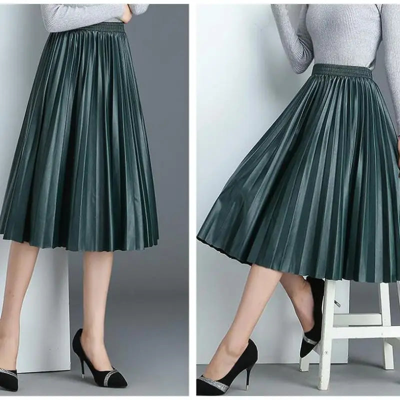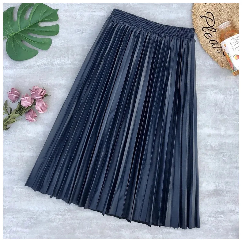 • Type:Pleated skirt /Faux Leather skirt / Pu skirt / Midi skirt / Long skirt