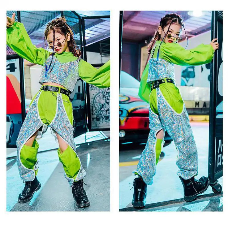 Girls Hip Hop Dancing Clothing Kid Sequins Stitching