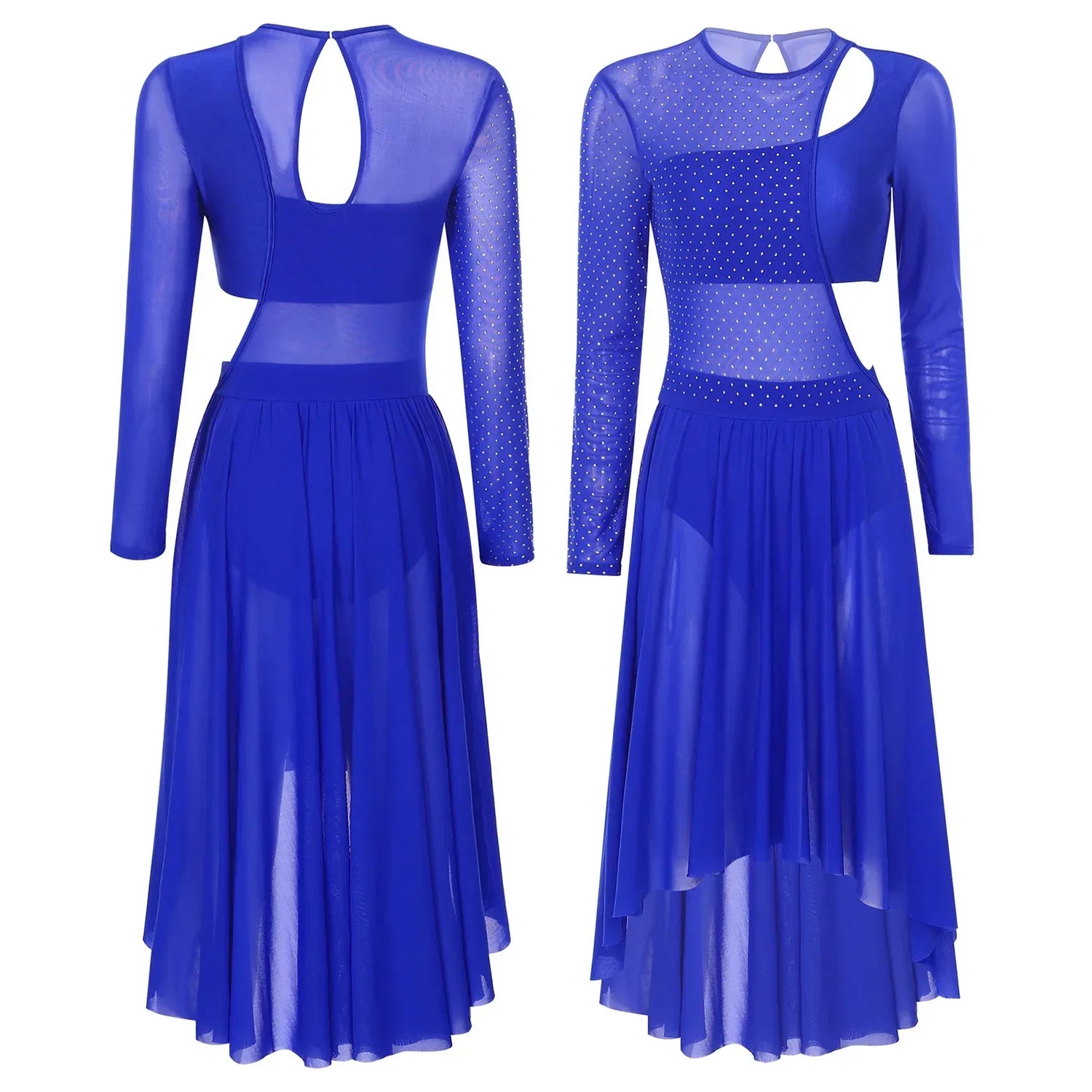 Womens Ballet Lyrical Dance Dress Shiny Rhinestone Sheer - Royal Blue A / S / VIP Price is backordered and will ship as soon as it is back in stock.