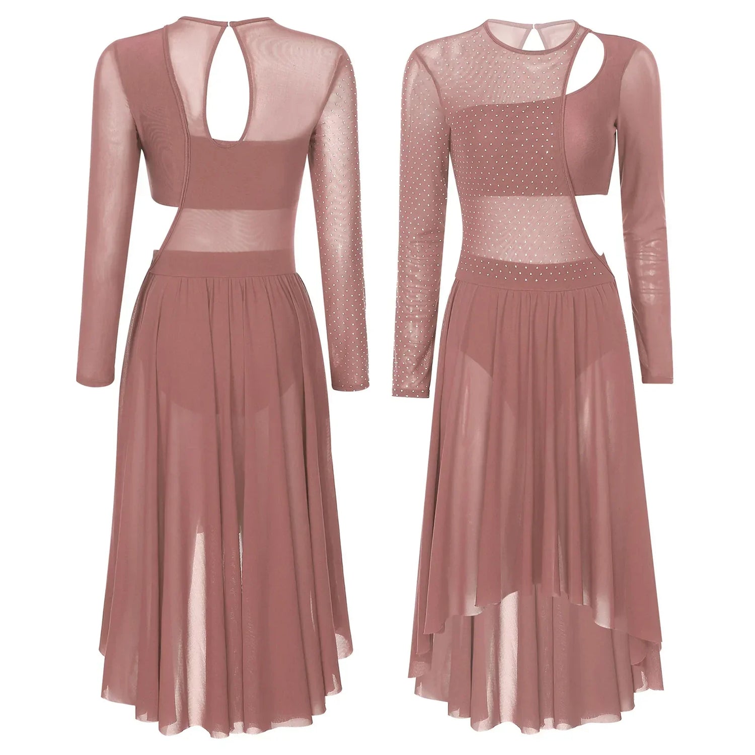 Womens Ballet Lyrical Dance Dress Shiny Rhinestone Sheer